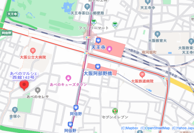 JR天王寺駅西口・大阪メトロ御堂筋線天王寺西口・谷町線天王寺・近鉄あべの橋西口を出て、陸橋を西南方面徒歩8分程度です。